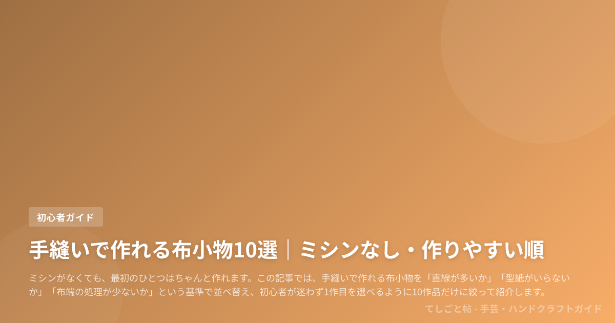この記事では、手縫いで作れる布小物を「直線が多いか」「型紙がいらないか」「布端の処理が少ないか」という基準で並べ替え、初心者が迷わず1作目を選べるように10作品だけに絞って紹介します。