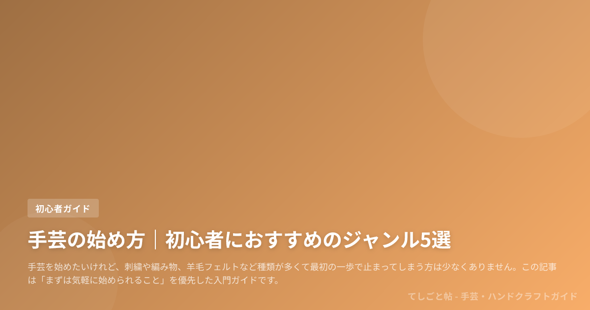 手芸の最初の1点は、仕上がりの豪華さより「短い工程で完成まで行けるか」を優先すると、次の作品に移りやすくなります。