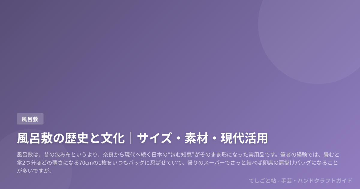この記事では風呂敷の歴史を5つの区分でたどり、名称由来の複数説が生まれる背景や、70cm前後・90cm前後のサイズ選び、綿・ポリエステル・絹など素材の違いを整理します。