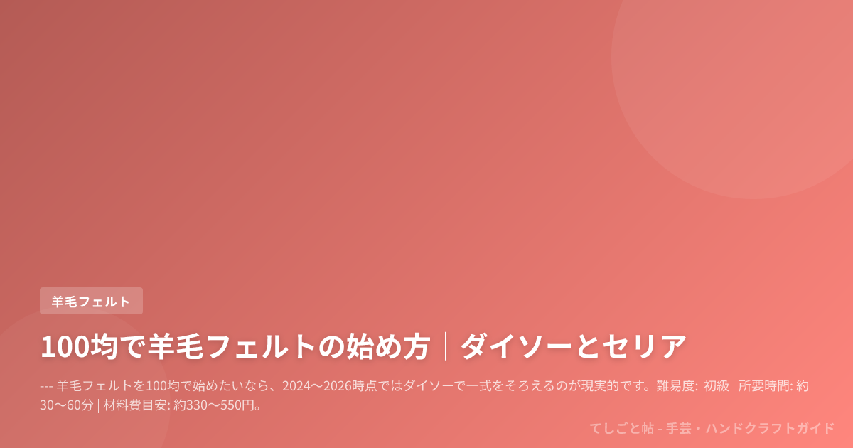 羊毛フェルトを100均で始めたいなら、2024〜2026時点ではダイソーで一式をそろえるのが現実的です。