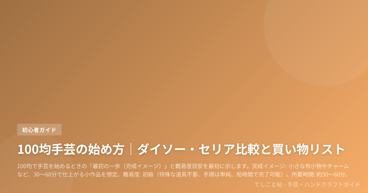 100均で手芸を始めるときの「最初の一歩(完成イメージ)」と難易度目安を最初に示します。