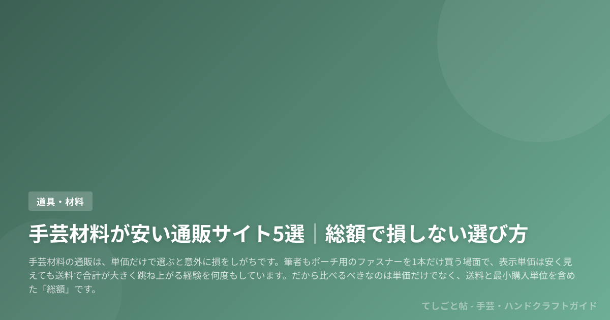 手芸材料は一点ごとの差額より、買い方の組み合わせで総額が変わる場面が多いので、店選びより先に注文の形を決めるほうが、節約の精度が上がります。