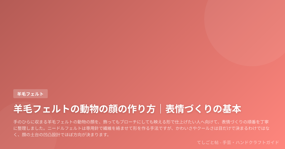 手のひらに収まる羊毛フェルトの動物の顔を、飾ってもブローチにしても映える形で仕上げたい人へ向けて、表情づくりの順番を丁寧に整理しました。